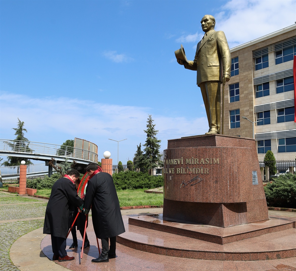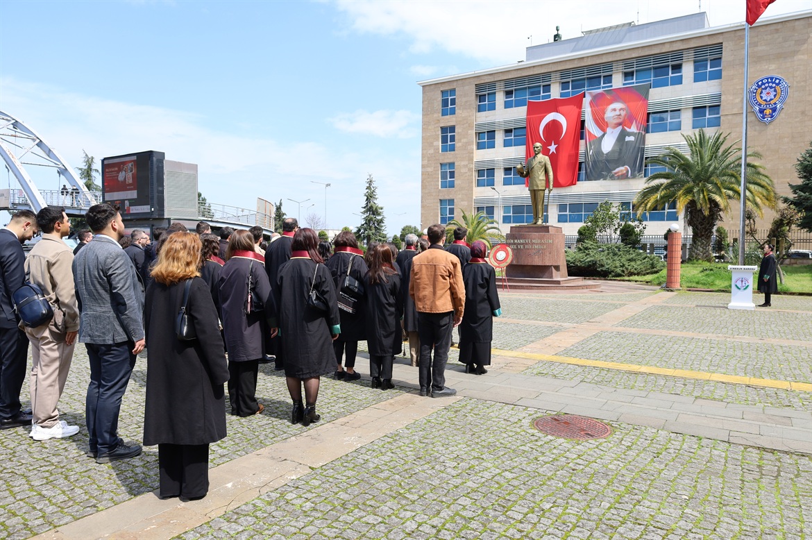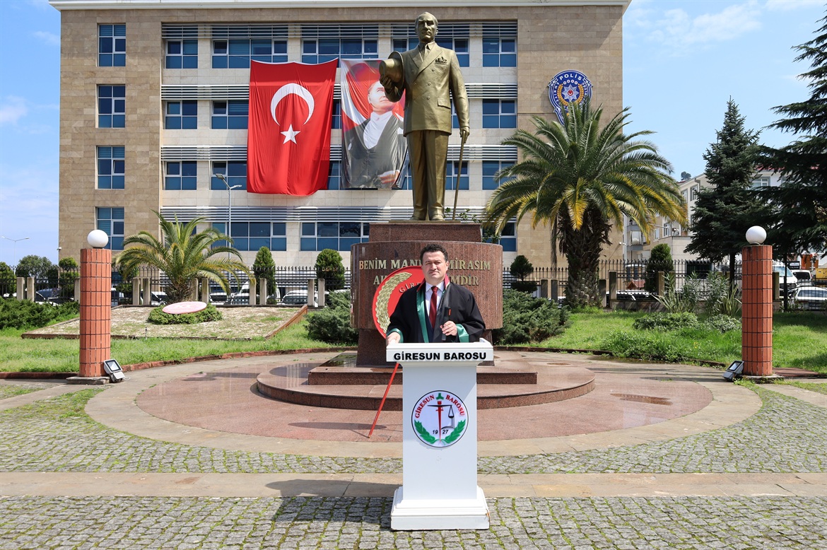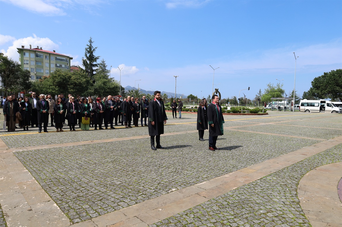 5 Nisan Avukatlar Günü münasebetiyle Hükümet Konağı önündeki Atatürk Anıtına Baro Başkanımız Av.Soner KARADEMİR, meslektaşlarımız Av.Bengisu ÇELEBİ ve Av.Furkan ÇOBAN tarafından çelenk sunulmasını müteakip, saygı duruşu ve İstiklal Marşımız okundu.