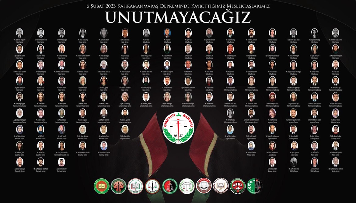 6 Şubat 2023 depremini unutmadık unutmayacağız. Kaybettiğimiz canlarımızı saygıyla anıyoruz. Giresun Barosu olarak deprem bölgesindeki yurttaşlarımızın acısını paylaşıyoruz. Giresun Barosu