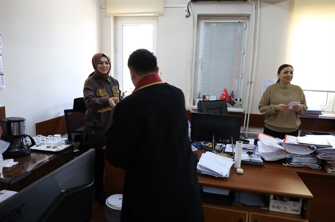 Giresun Merkez Adliyesinde görev yapmakta olan kadın Hakim Savcılarımız, tüm Adliye Personellerimiz Adliye Ek Binasında bulunan İcra Müdürlüğü, Denetimli Serbestlik Müdürlüğü ve Seçim Müdürlüğünde görev yapan kadın personellerimize ise Baro Başkanımız Av.Soner KARADEMİR, Baro Genel Sekreterimiz Av.Eylem SÜRÜCÜ, Yönetim Kurulu Üyelerimiz; Av.Hatice AYDIN, Kadın Hakları Danışma ve Uygulama Komisyonu Koordinatörü Yönetim Kurulu Üyemiz Av.Elif CİVELEKOĞLU, Av.Şehnaz BOZALİOĞLU ve Av.Funda ARIK, Kadın Hakları Danışma ve Uygulama Komisyonu Üyelerimiz Av.Rabia ÇETİN CEBECİ ve Av.Edanur AYVAT ile meslektaşlarımız Av.Demet KELEŞOĞLU UZUN ve Av.Merve IŞIK tarafından dağıtıldı. Bir kez daha emekçi kadınlarımızın gününü kutlar; her türlü mücadelelerinde yanlarında olduğumuzu kamuoyunun bilgisine saygıyla sunarız. Giresun Barosu Yönetim Kurulu