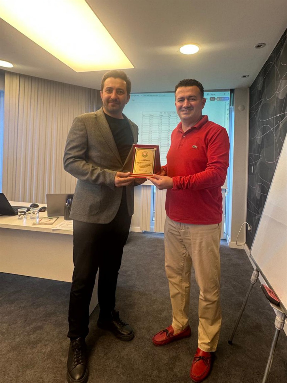Baromuzca, Staj Eğitim merkezimizde 20-21 Eylül 2025 tarihlerinde Aktüerya Hesaplamaları Uzman Bilirkişilik Eğitimi düzenlendi. Eğitim sonunda eğitimi veren meslektaşımız Av.Muhammet ÖZKAN’a Baro Başkanımız Av.Soner KARADEMİR plaket takdim etti.