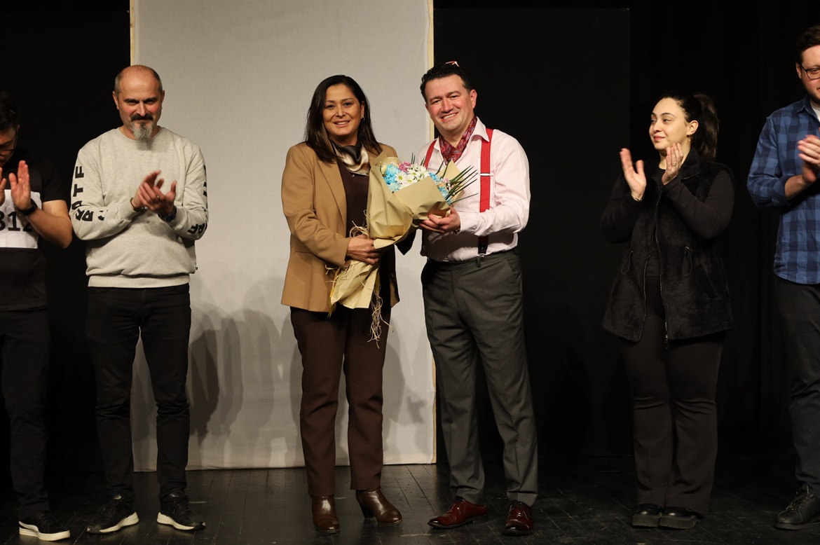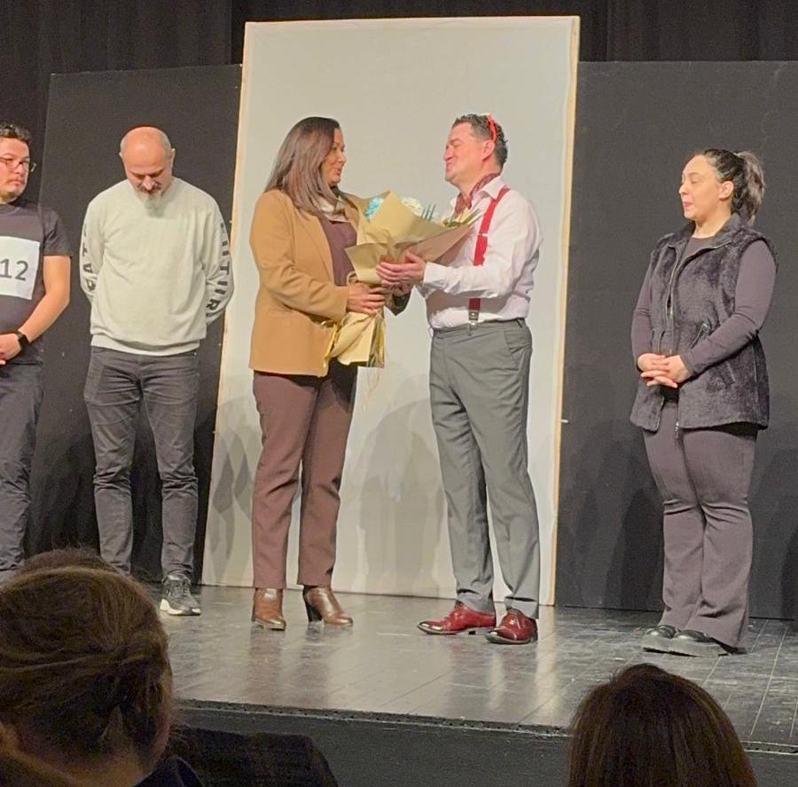 Meslektaşlarımız, Giresun Eczacılar Odası, Özel Ada Hastanesi, Özel Kent Hastanesi, Giresun Tabipler Odası, Adliye çalışanları be ailelerini ağırladığımız gösterimde Giresun Eczacılar Odası Başkanlığı adına önceki dönem Başkanlarımızdan Ecz.Mine ERDOĞAN tarafından oyuncularımız adına Baro Başkanımız Av.Soner KARADEMİR’e çiçek takdim edildi.