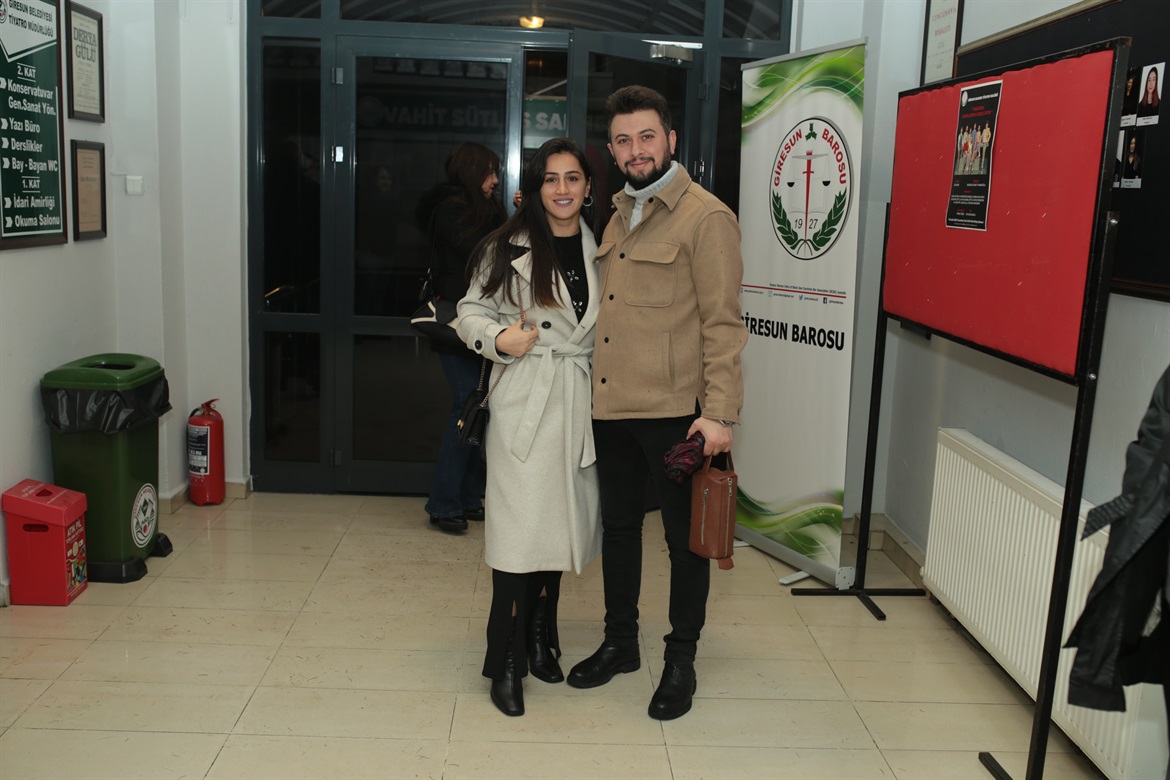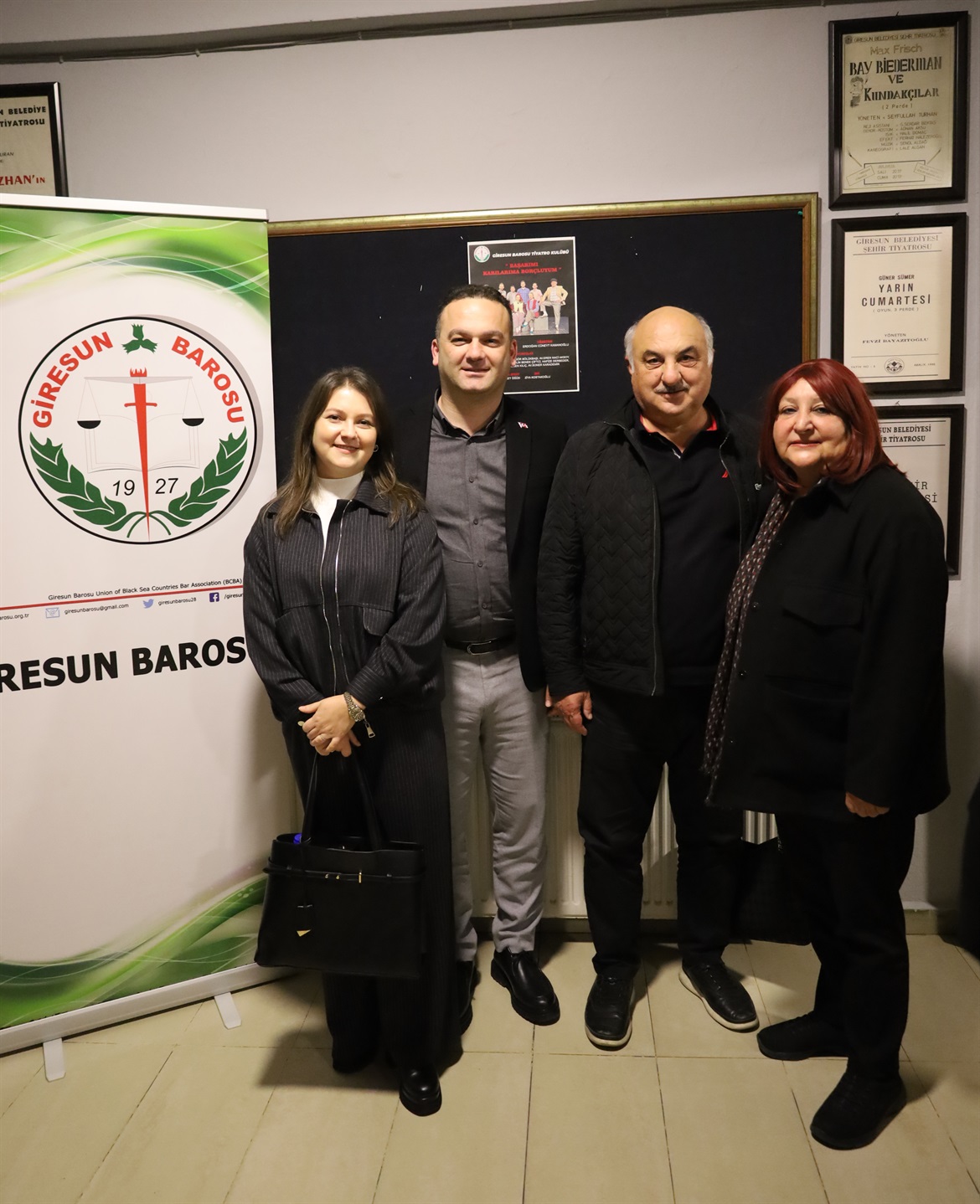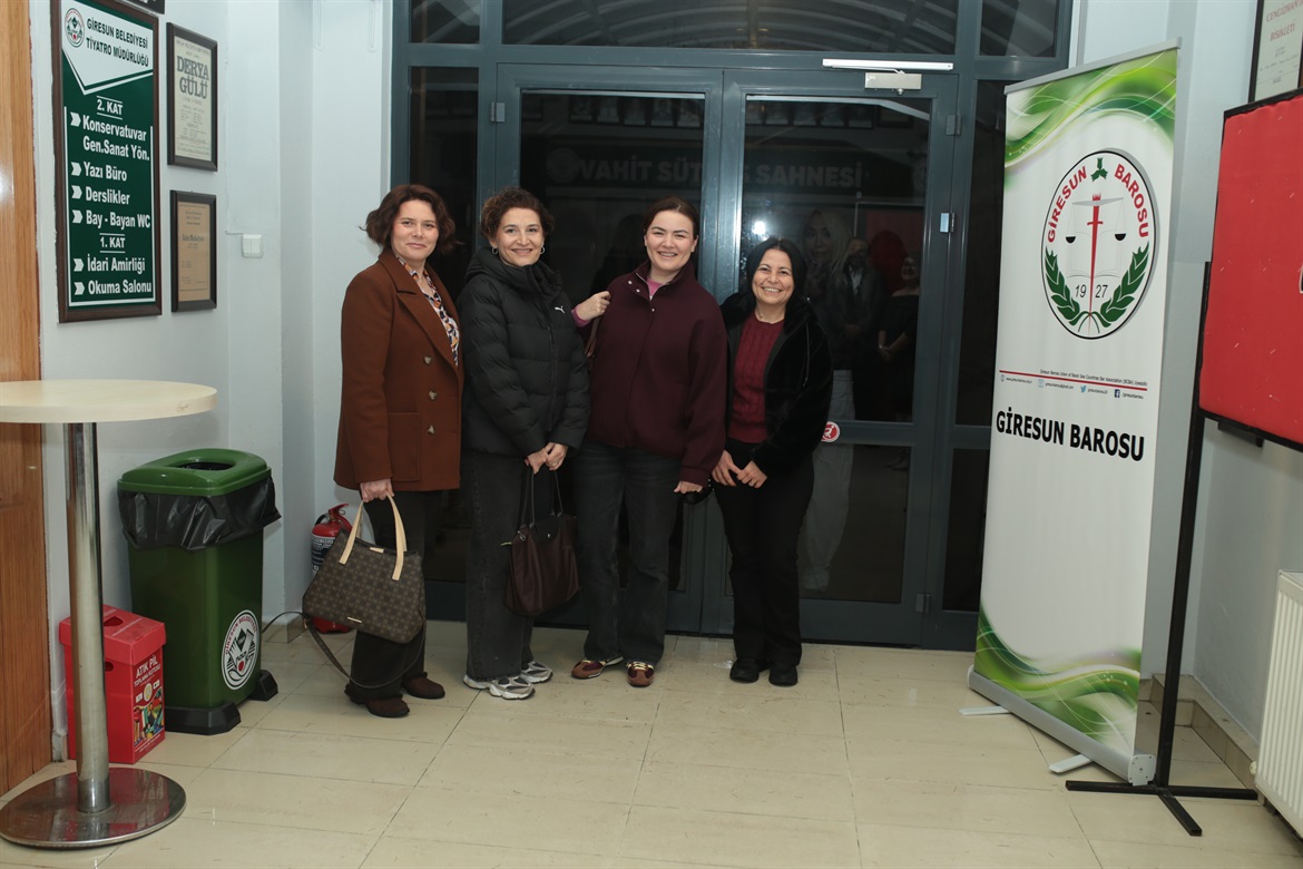 Giresun Barosu Tiyatro Kulübü tarafından 13 Aralık 2025 Cumartesi, 18 Aralık 2025 Perşembe ve 27 Aralık 2025 Cumartesi Akşamı Giresun Vahit Sütlaş sahnesinde "Başarımı Karılarıma Borçluyum" adlı oyun meslektaşlarımız, stajyerlerimiz, adliye personellerimiz ve ailelerine özel gösterim ile üç kez ücretsiz sahnelendi. Gerek gala gecesinde gerekse diğer günlerde oldukça yoğun katılım ile sahnelenen oyun ve performanslar büyük beğeni topladı. Oyunda emeği geçen yönetmenimiz Erdoğan Cüneyt KAMANOĞLU’na, oyuncularımız Av.Sefa ÖZTÜRK, Av.Güngör BÖLÜKBAŞI, Av.Mustafa ÇİFTCİ, Av.Aylin BENEK ÇİFTCİ, Av.Eren Naci AKSOY ile Hafize DERBEDER, Ali İlker PİR, İlgen KILIÇ’a ve Baro Başkanımız Av.Soner KARADEMİR’e; sahne arkasında ses efektte Fikret ÖĞÜD, ışıkta Ziya KOSTAKOĞLU’na, sahneyi tahsis eden Giresun Belediye Başkanı Fuat KÖSE’ye; bizleri yalnız bırakmayan meslektaşlarımıza ve ailelerine, Giresun Başsavcısı Zeynel Abidin AKKİRAZ’a, Görele Belediye Başkanı Hasbi DEDE’ye, Giresun 2.Ağır Ceza Mahkemesi Başkanı Burak BABACAN’a, hakim ve savcılarımıza, akademisyenlerimize, eczacılarımıza tüm misafirlerimize teşekkür eder; yeni oyunlarda buluşmak üzere Tiyatro Kulübümüzün başarılarının devamını dileriz. Giresun Barosu Yönetim Kurulu