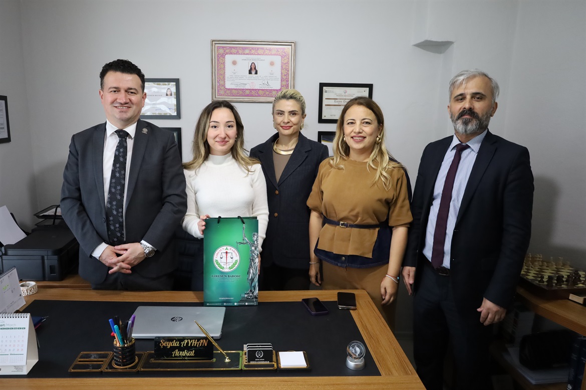 Bulancak ilçemizde göreve başlayan meslektaşımız Av.Şeyda AYHAN’ı 12 Mart 2026 Perşembe günü bürosunda ziyaret ettik. Baro Başkanımız Av.Soner KARADEMİR, Saymanımız Av.Fatih GÜVEN, Yönetim Kurulu Üyelerimiz Av.Hatice AYDIN ve Av.Şehnaz BOZALİOĞLU’nun katıldığı ziyarette Baromuzca bastırılan kitaplar hediye edildi. Misafirperverliğinden dolayı meslektaşımıza teşekkür eder, meslek hayatında başarılar dileriz. Giresun Barosu Yönetim Kurulu