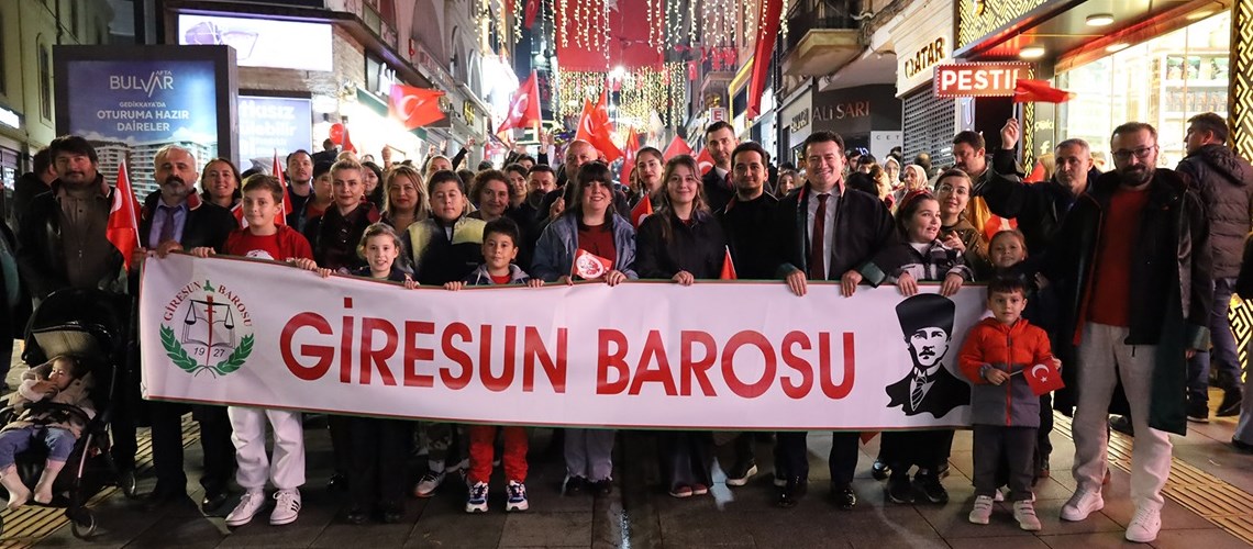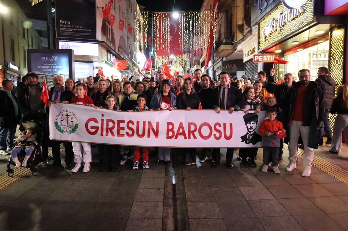 Cumhuriyetimizin 102’inci yılı kutlamaları münasebetiyle 29 Ekim 2025 Çarşamba günü Debboy Mevkiinden başlayarak Atatürk Meydanına kadar süren Cumhuriyet Bayramı Fener Alayı yürüyüşüne, Baro Başkanımız Av.Soner KARADEMİR, Başkan Yardımcımız Av.Ayşegül ÇAKIR HIDIR, Saymanımız Av.Fatih GÜVEN, Yönetim Kurulu Üyelerimiz Av.Hatice AYDIN, Av.Şehnaz BOZALİOĞLU, Av.Ahmet Utku YANIK, Av.Funda ARIK ile meslektaşlarımız, çocuklarımız ve vatandaşlarımız katıldı.