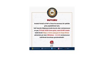 UYAP e-İmza ile sorunsuz şekilde giriş yapılabilmesi için hali hazırda bilgisayarınızda kurulu olan versiyonunun 23 Ocak 2026 Cuma 03:00:00 tarihine kadar kaldırılarak https://uyap.gov.tr/Uyap-Eimza adresinde yer alan (Windows - 2.2.12) versiyonunun indirilerek kurulması gerekmektedir.
