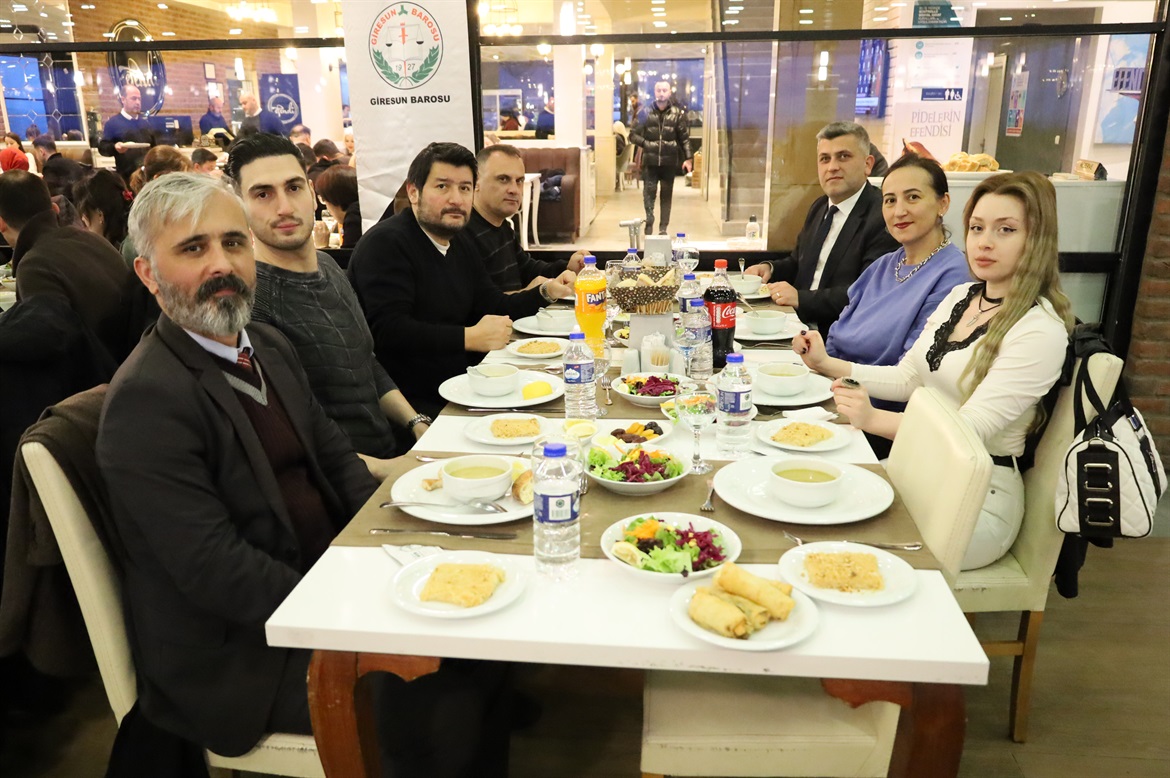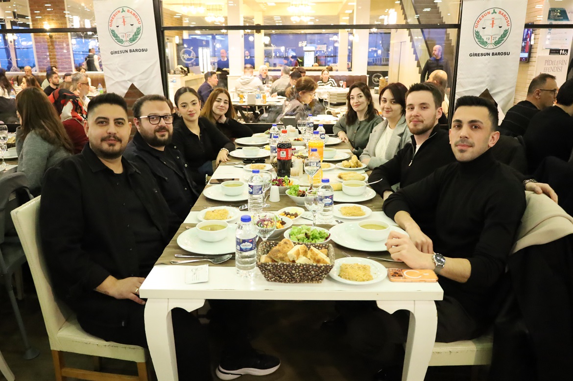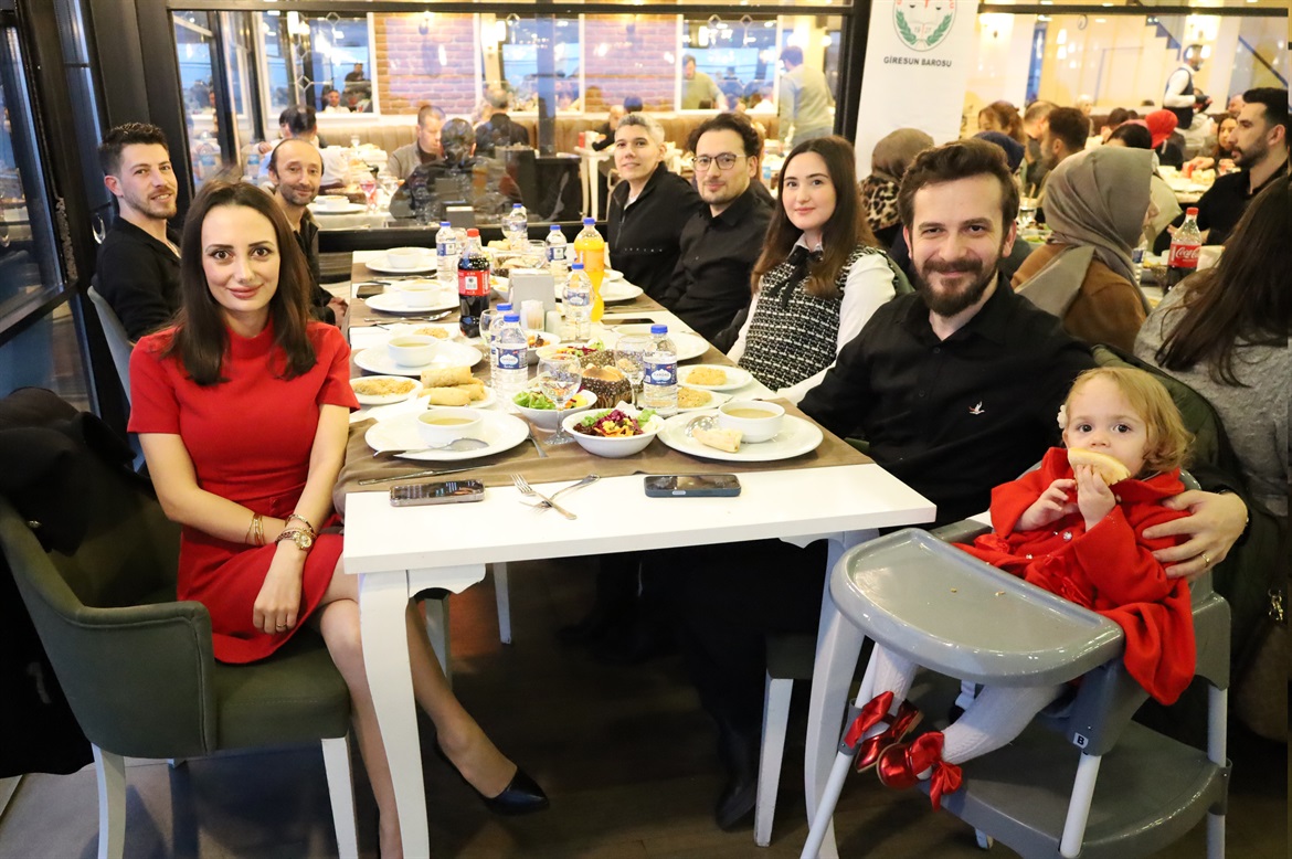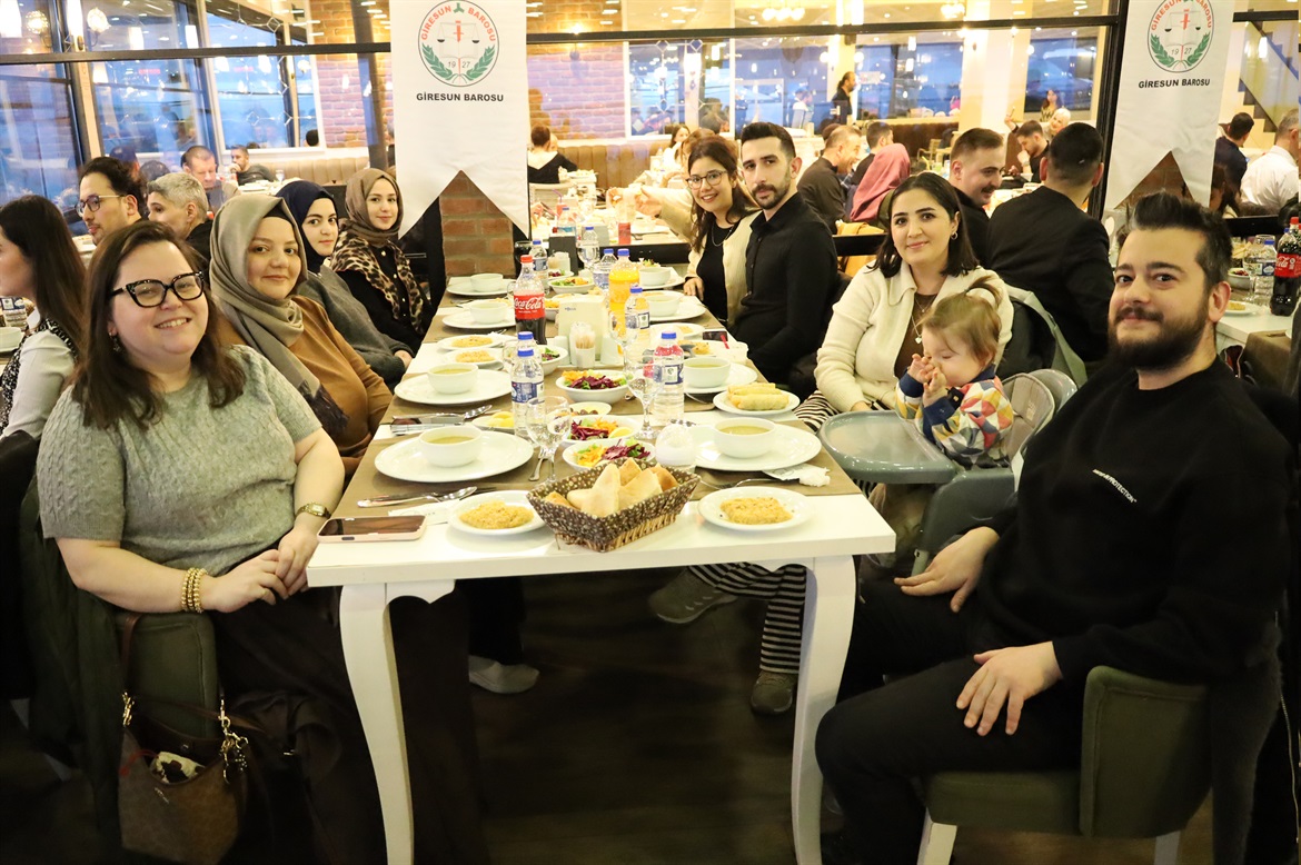 Baro Başkanımız Av.Soner KARADEMİR, Başkan Yardımcımız Av.Ayşegül ÇAKIR HIDIR, Genel Sekreterimiz Av.Eylem SÜRÜCÜ, Saymanımız Av.Fatih GÜVEN, Yönetim Kurulu Üyelerimiz Av.Hatice AYDIN, Av.Elif CİVELEKOĞLU, Av.Şehnaz BOZALİOĞLU, Av.Muhammed Ali MACARA ve Av.Funda ARIK ile meslektaşlarımız, stajyerlerimiz, Baro personellerimiz ve ailelerinin katılımıyla hoş sohbet ortamında gerçekleşen iftar yemeğinde bizleri yalnız bırakmayıp varlıklarıyla onurlandıran tüm meslektaşlarımız ve ailelerine; Efendi Restaurant yetkililerine ve çalışanlarına çok teşekkür eder; sağlıklı mutlu huzurlu nice günlerde buluşmayı dileriz. Giresun Barosu Yönetim Kurulu