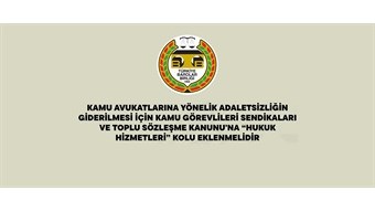 Anayasa'nın 55. maddesinin “Devlet, çalışanların yaptıkları işe uygun adaletli bir ücret elde etmeleri ve diğer sosyal yardımlardan yararlanmaları için gerekli tedbirleri alır.” hükmü ve “Eşit işe eşit ücret” ilkesi gereği, Kamu Görevlileri Sendikaları ve Toplu Sözleşme Kanunu'na “Hukuk Hizmetleri” kolu eklenmelidir.
