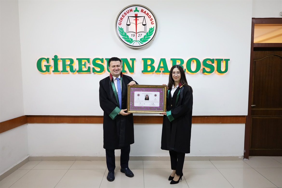 Baro Başkanımız Av.Soner KARADEMİR’in meslektaşımız Av.Bengisu ÇELEBİ’ye Avukatlık Meslek Yeminini yaptırmasını müteakip cübbesi yanında staj yaptığı meslektaşımız Av.Sinan BAYRAM tarafından giydirildi. Sonrasında Avukatlık Ruhsatı Baro Başkanımız Av.Soner KARADEMİR tarafından takdim edilen meslektaşımıza güzel ve mutlu bir meslek yaşamı dileriz. Giresun Barosu Yönetim Kurulu