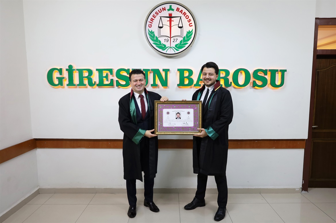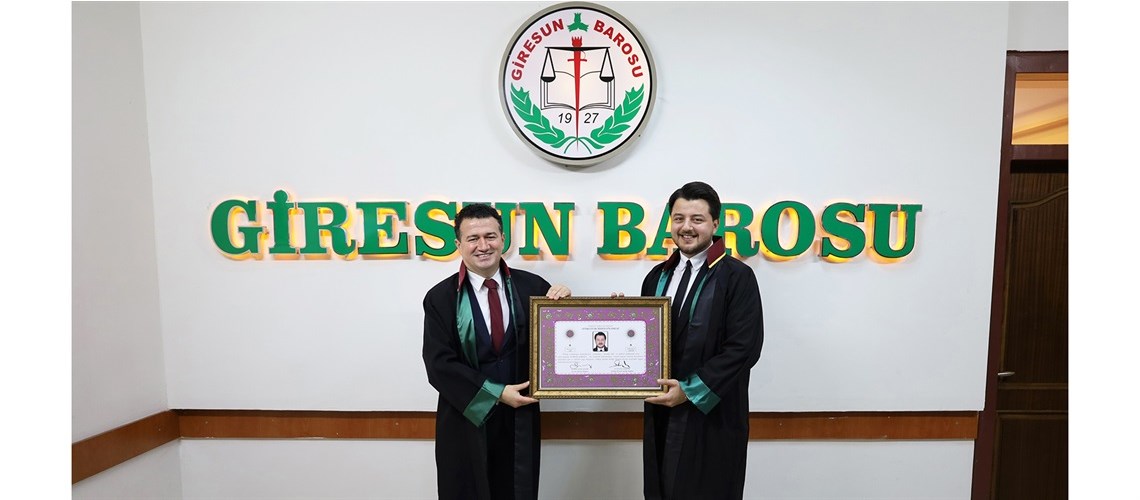 26 Kasım 2025 Çarşamba günü gerçekleştirilen törende; Baro Başkanımız Av.Soner KARADEMİR’in meslektaşımız Av.Furkan ÇOBAN’a Avukatlık Meslek Yeminini yaptırmasını müteakip cübbesi yanında stajını yaptığı meslektaşımız Av.Erdem YILMAZ tarafından giydirildi. Sonrasında Avukatlık Ruhsatı Baro Başkanımız Av.Soner KARADEMİR tarafından takdim edilen meslektaşımıza güzel, mutlu, başarılı bir meslek yaşamı dileriz. Giresun Barosu Yönetim Kurulu