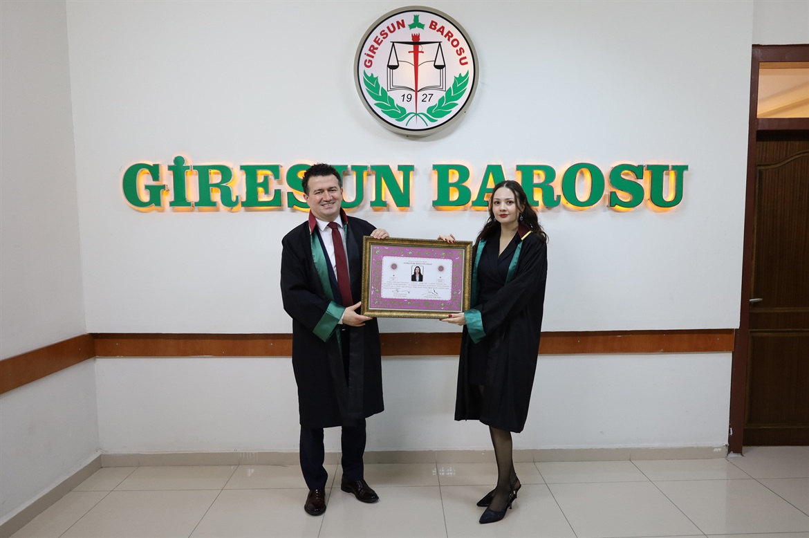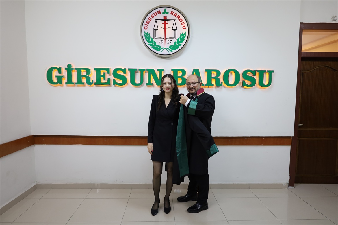 Baro Başkanımız Av.Soner KARADEMİR’in meslektaşımız Av.Hacer KODALAK’a Avukatlık Meslek Yeminini yaptırmasını müteakip cübbesi yanında staj yaptığı meslektaşımız Av.İskender UZUN tarafından giydirildi. Sonrasında Avukatlık Ruhsatı Baro Başkanımız Av.Soner KARADEMİR tarafından takdim edilen meslektaşımıza güzel ve mutlu bir meslek yaşamı dileriz. Giresun Barosu Yönetim Kurulu