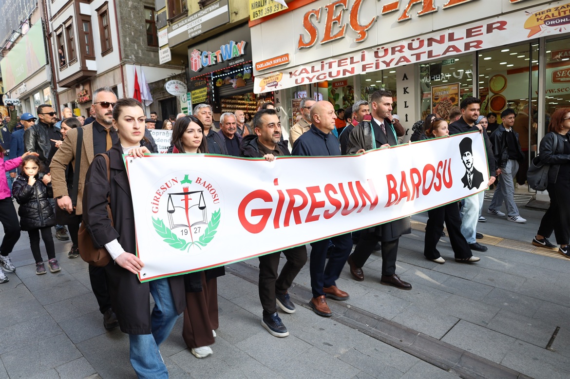 İlimizde yapılmak istenen maden arama faaliyetlerine karşı 17 Nisan 2026 Cuma günü düzenlenen Giresun Maden İstemiyor yürüyüşüne ve ardından meslektaşımız Av. Furkan KARAKOL, Dr. Öğretim Üyesi Nazım KURUCA ve Emirhan YILMAZ'ın konuşma yaptığı basın açıklamasına Baro Genel Sekreteri Av.Eylem SÜRÜCÜ, Baro Saymanı Av.Fatih GÜVEN, Çevre Komisyonu Koordinatörü Yönetim Kurulu Üyesi Av.Funda ARIK ile meslektaşlarımız katıldı.