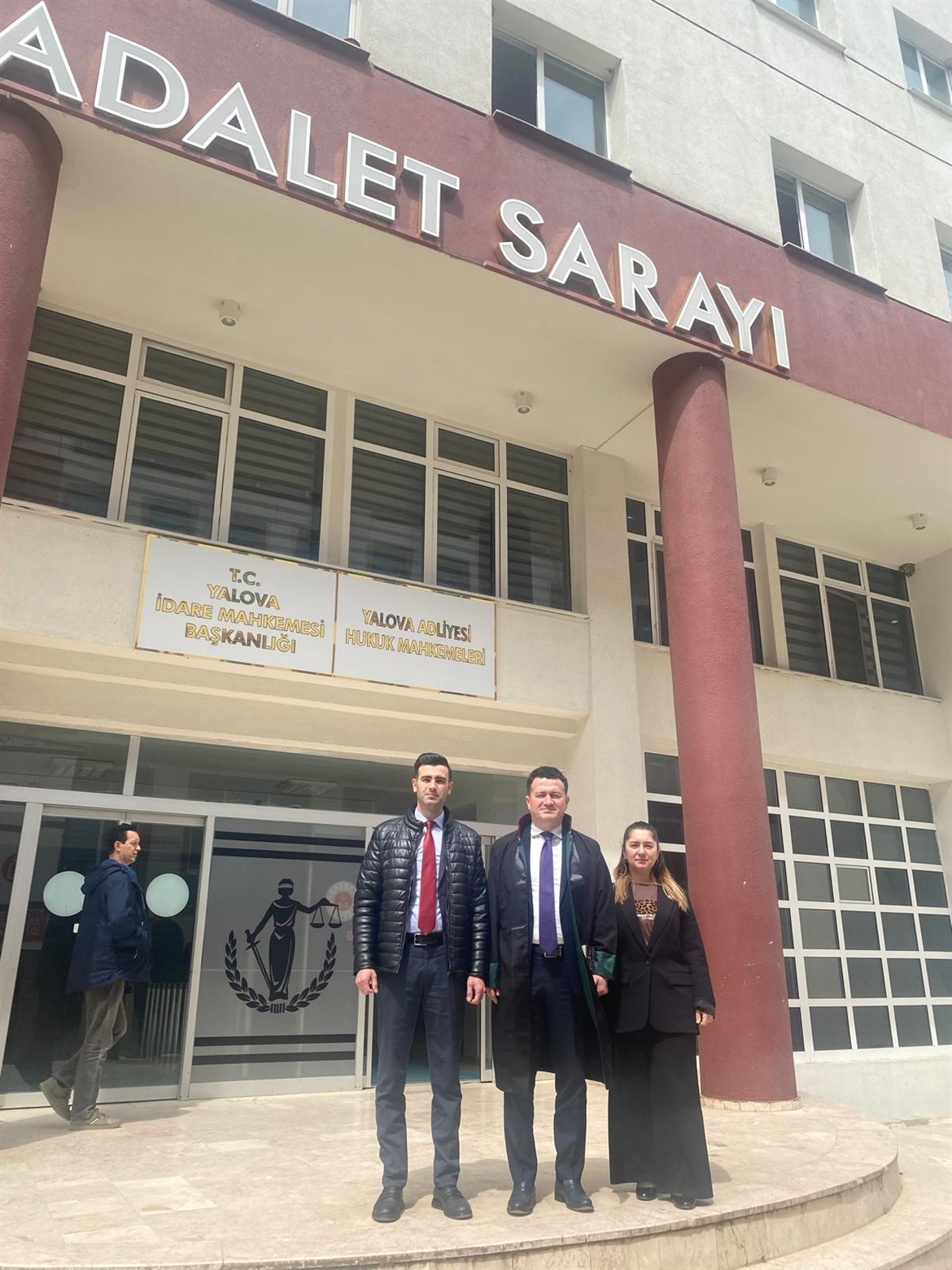 Yalova Sosyal Güvenlik Kurumunda engelli kadrosundan görev yaparken katledilen meslektaşımız Av.Zekeriya POLAT’ın 17.04.2026 tarihinde Yalova’da yapılan ilk duruşmasına baromuzu temsilen Baro Başkanımız Av.Soner KARADEMİR, Barolar Birliği Başkanı ve Yönetim Kurulu ile çok sayıda Baro Başkanı katıldı. Giresun’dan Yalova Adliyesine tayin olan adliye personellerimizden Yazı İşleri Müdürü Tayfun TURP ve Şirin Aylin KALAFAT Baro Başkanımızı ziyaret etti.
